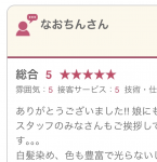 この度も大変素敵に仕上げて下さりありがとうございました!また、大変親切に気軽に教えて下さりとても勉強になりました!次回行くのが楽しみです(^_^)!