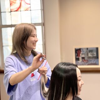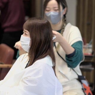 【お客様のご要望に応えるカット】カットの途中でも「バランスはいかがですか?」「軽さはどうですか?」と確認しながらお進めます。お客様の希望をしっかりお聞きしますので、遠慮なくお好みを伝えください。
