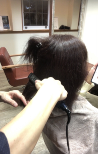 シャンプー台で髪に栄養をたっぷり補給した後、スチームを当てながらトリートメントをしっかりと内部まで浸透させていきます。