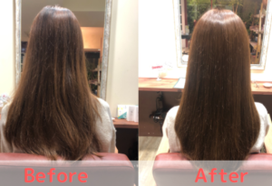 このトリートメントは、しっとり感も今までとは違い、手触りで実感できます。その後栄養素が漏れ出さないように、アイロンを使用し完全に栄養定着させていきます。